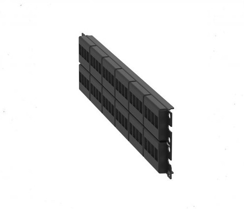 The NetKey Faceplate Modular Patch Panel accepts up to 48 keystone modules for unshielded applications in 2 RU and mounts to 19 inch and 23 inch racks and cabinets. The panel offers front access, can be identified with adhesive labels, and is black.