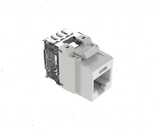 The NetKey Cat6A UTP RJ45 Punch down Keystone Jack Module is designed to terminate 4-pair, 22–26 AWG twisted pair cable. Each module is 100% factory tested to exceed industry standard performance requirements. Contacts are plated with 50 micro inches of gold for superior performance. Jacks are individually serialized for traceability and are compatible with keystone interfaces such as NetKey Faceplates, Modular Patch Panels, and Surface Mount Boxes. The jack module is arctic white.