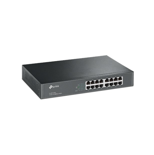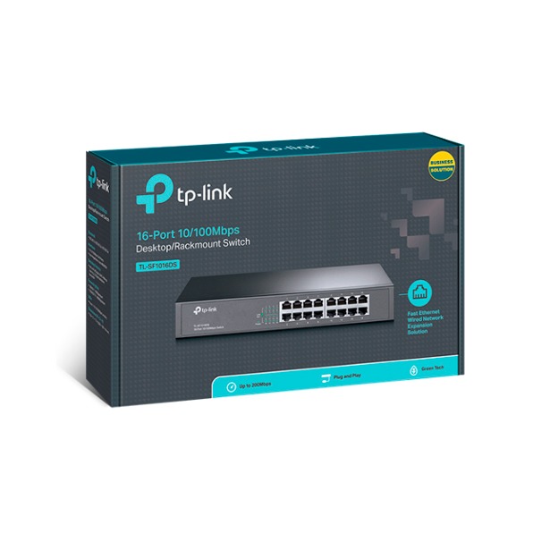 The 16-Port 10/100Mbps Desktop/Rackmount Switch TL-SF1016DS provides you with a high-performance, low-cost, easy-to-use, seamless and standard upgrade to improve old network to 100Mbps network. All 16 ports support auto MDI/MDIX, no need to worry about the cable type, simply plug and play. Moreover, with the innovative energy-efficient technology, the TL-SF1016DS can save the power consumption and most of the packaging material can be recycled, making it an eco-friendly solution for your business network. The rack-mount size steel case design, combined with a safety-certified internal power supply, make the switch the most robust product, which is very cost-effective for a less than 16-user environment. Featuring non-blocking switching architecture, TL-SF1016DS forwards and filters packets at full wire-speed for maximum throughput. And IEEE 802.3x flow control for Full Duplex mode and backpressure for Half Duplex mode alleviate the traffic congestion and make TL-SF1016DS work reliably.
